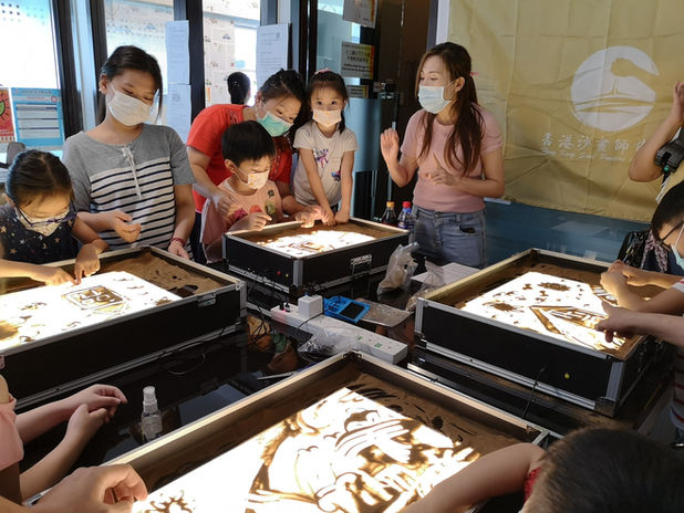 在學習沙畫的過程中,除了用雙手畫外,更可能要求作畫者在過程中說明畫作的內容,邊畫邊介紹,更有機會參與公開表演,有助提升自信心。
